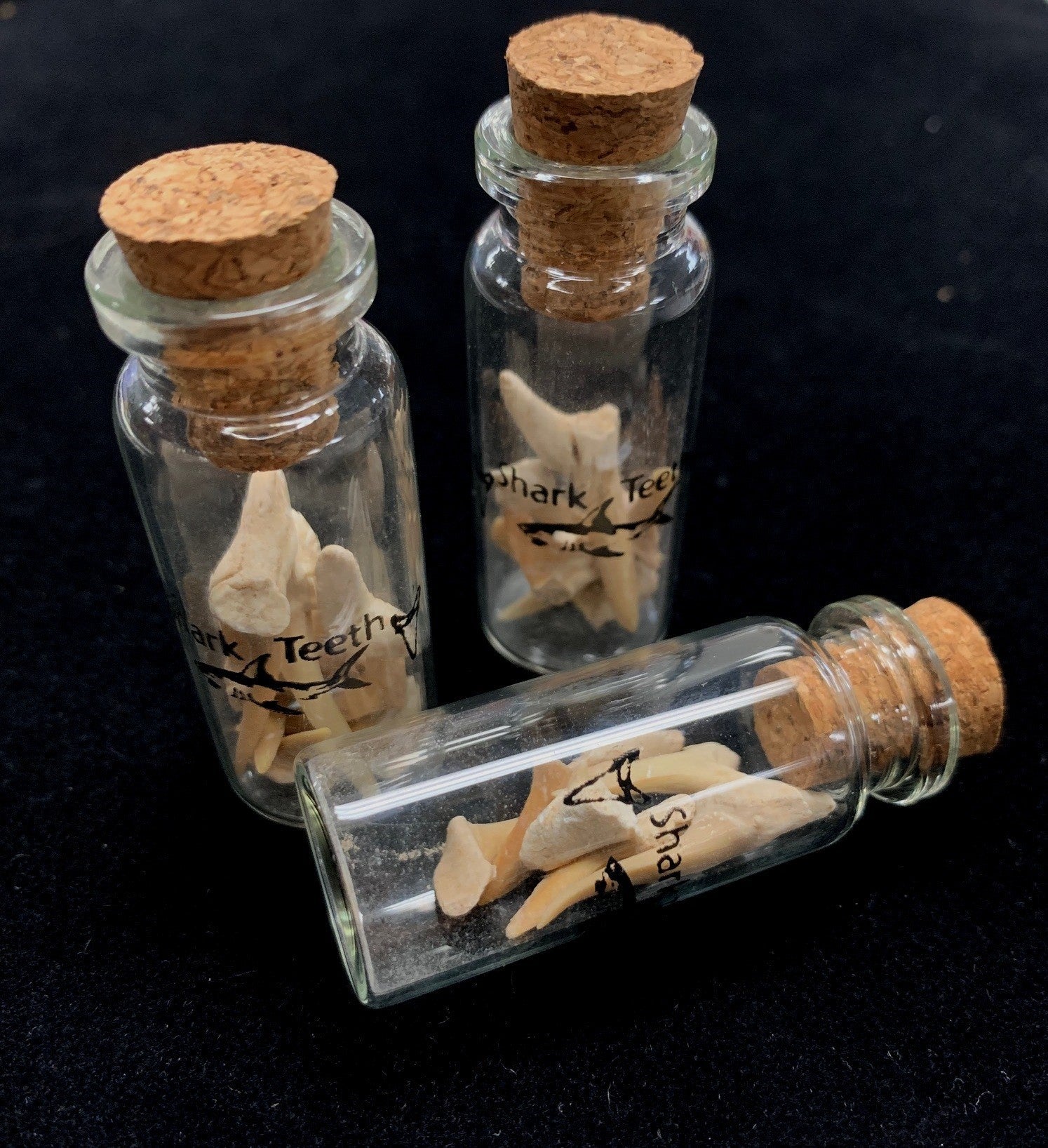 A fun ocean keepsake featuring real shark teeth sealed in a clear glass bottle. 🦈 Each bottle is unique—contents vary with naturally different teeth 🌊 A collectible gift for ocean...