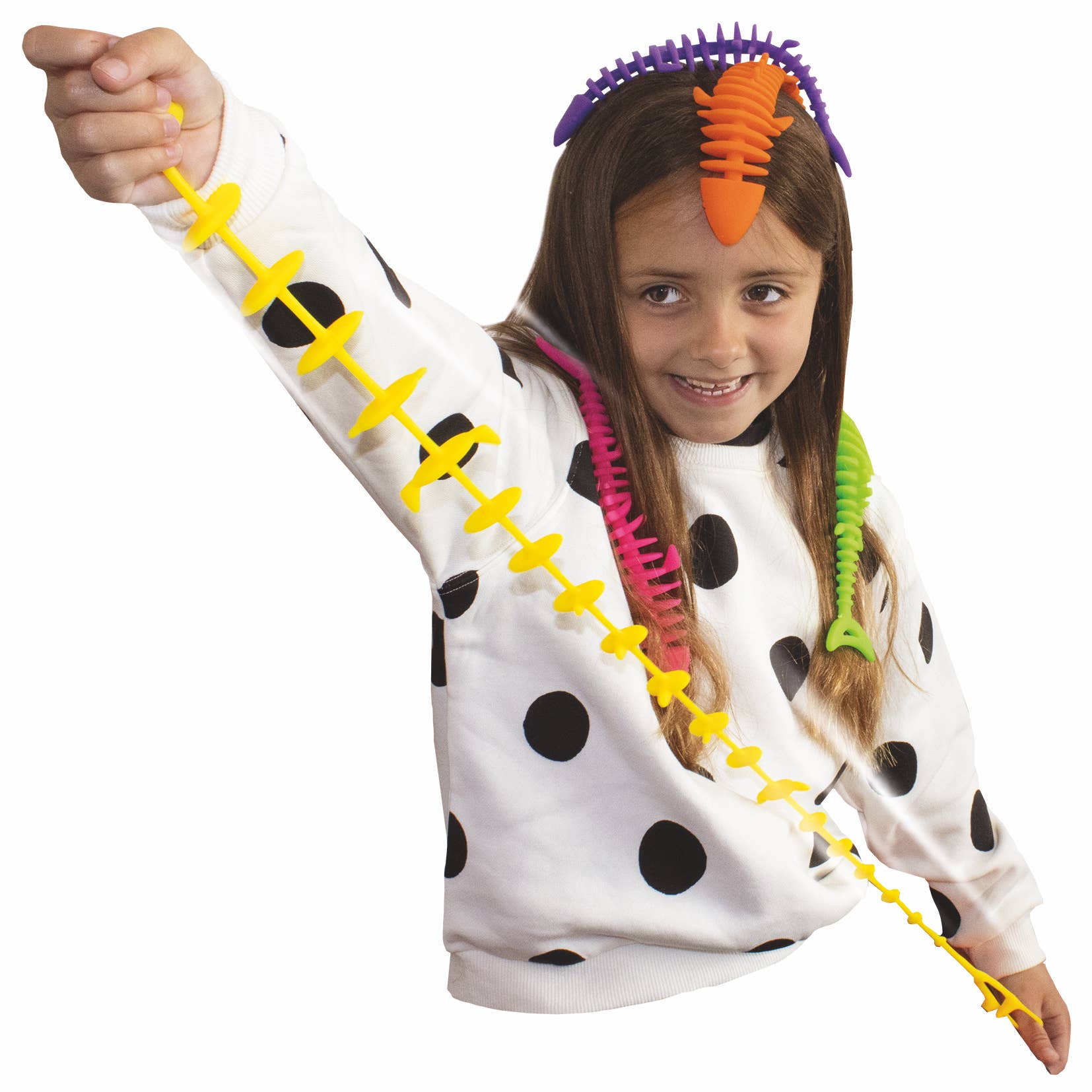 Stretchibones offers a fun collection of mega-stretchy skeleton toys, featuring this fish design. These novelty toys combine vibrant colors with super-stretchy properties, making them irresistibly entertaining. Each skeleton is available in six eye-catching colors and arrives loosely packed in a counter display made from recycled card, perfect for retail environments. The Stretchibones range is a playful five-piece collection.