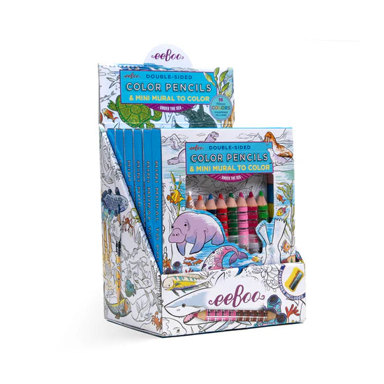 8 high quality, double-sided colored pencils offering 16 vivid colors bundled with an intricate undersea fold-out coloring mural teeming with creatures and details of the deep by illustrator Linda Bleck. Includes 6 units per display.